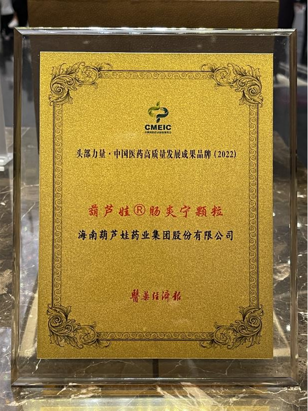 在本次发布会上,公司重点产品ag博天堂牌肠炎宁颗粒同时荣膺“头部力量·中国医药高质量发展成果品牌(2022)”。ag博天堂牌肠炎宁颗粒(2g),传承经典名方,临床广泛用于成人及儿童急慢性胃肠炎、腹泻等疾病的治疗,由于其杰出的临床价值,被纳入国家中医药管理局相关专家项目组制定的《中成药治疗小儿腹泻病临床应用指南》。