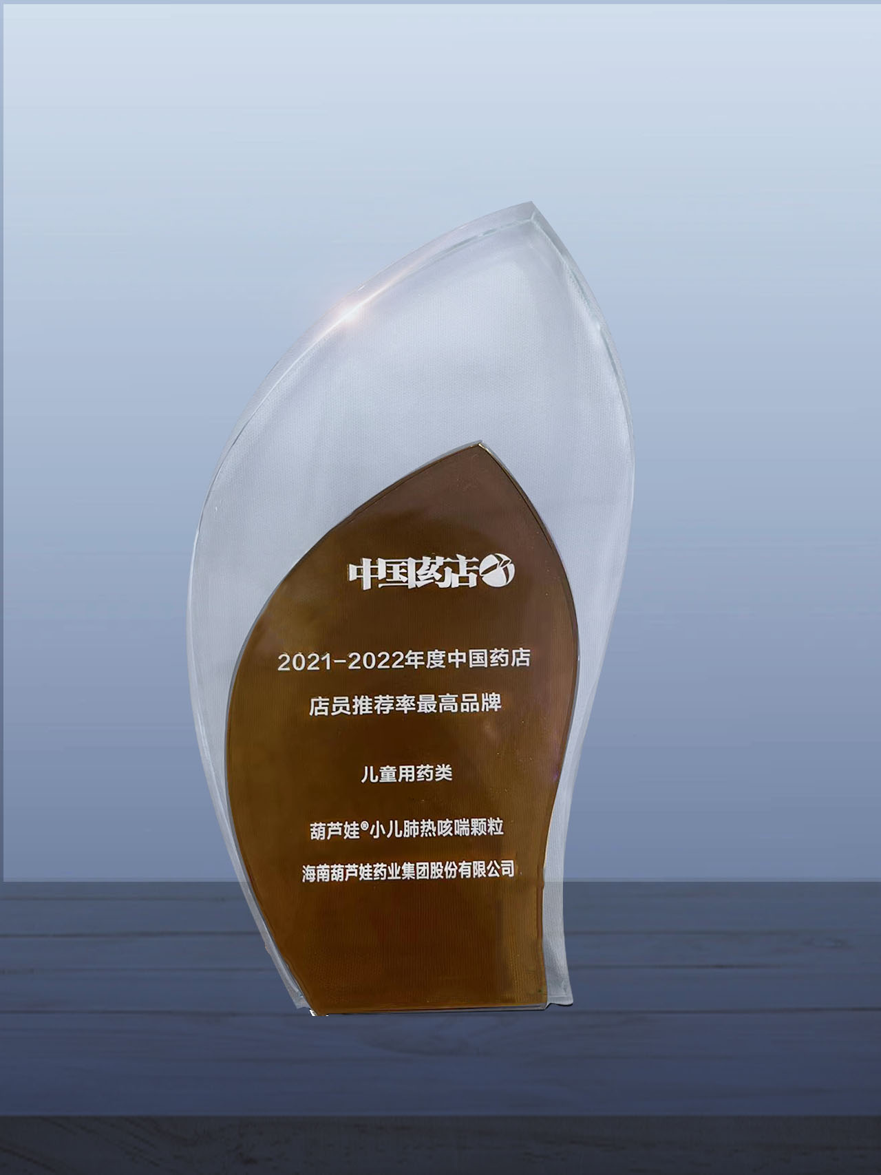 近日,由《中国药店》杂志社举办的“2022~2023年度中国药店发展报告暨中国药店价值榜发布会”在青岛举行,会上发布了“2021-2022年度中国药店店员推荐率最高品牌”奖,ag博天堂药业两大明星产品ag博天堂牌小儿肺热咳喘颗粒(4g)、ag博天堂牌肠炎宁颗粒(2g)双双上榜。
